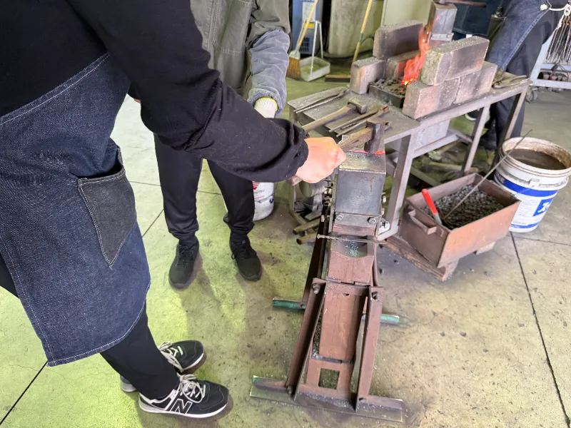 まず向かったのは、『三条鍛治道場』。釘からペーパーナイフを作る体験をさせてもらいました。